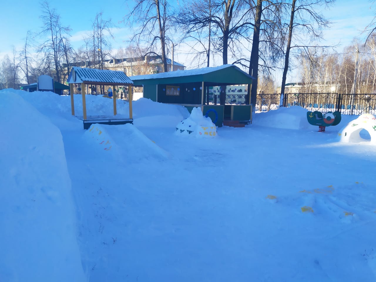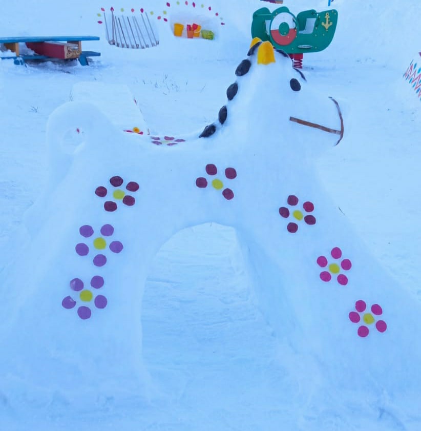 Воспитателями совместно с родителями на участках детского сада созданы красочные снежные постройки, которые соответствуют требованиям безопасности. На оформленных участках дети играют с большим удовольствием.