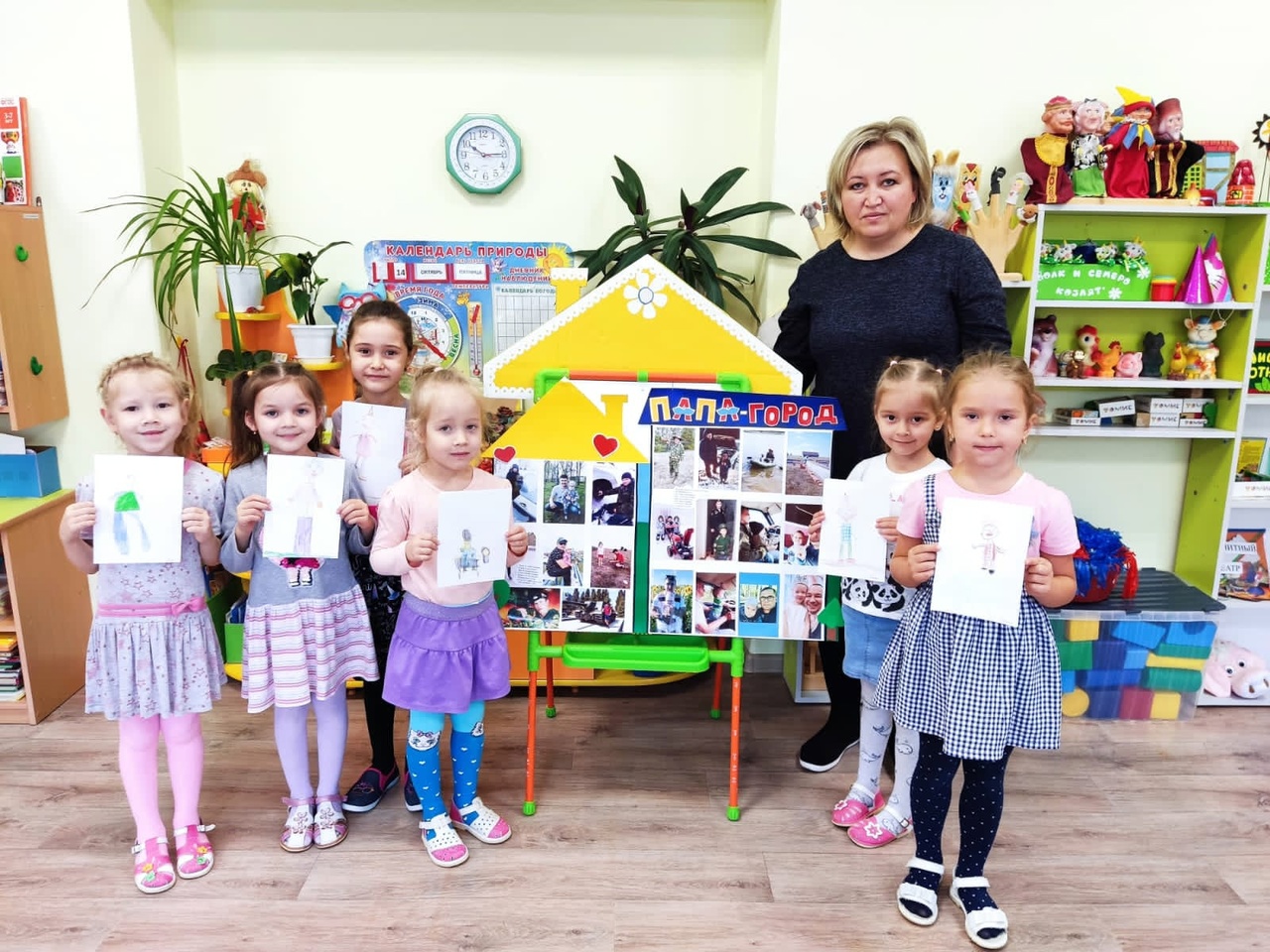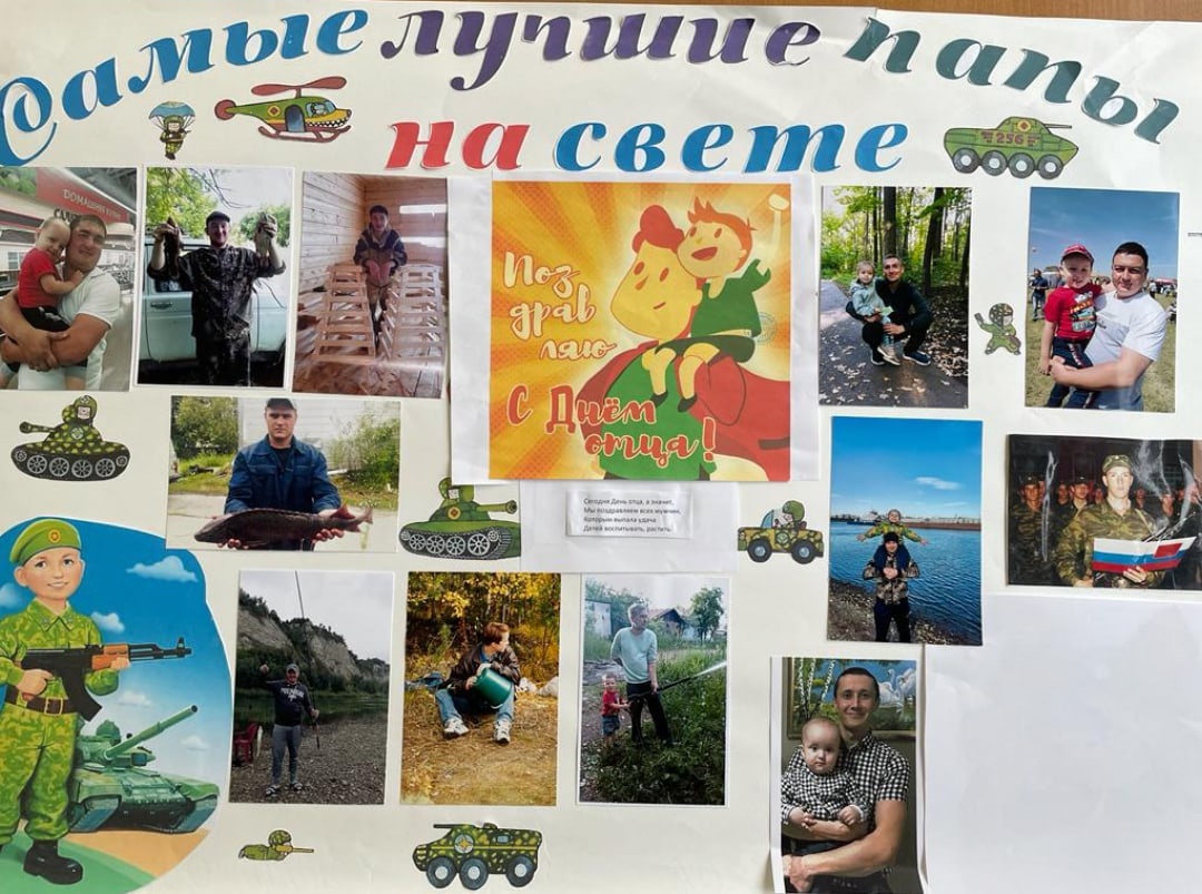 В рамках празднования Дня отца в детском саду были проведены интересные тематические занятия, на которых дети рисовали портреты своих пап "Мой любимый папа", коллективные стенгазеты-поздравления, открытки для пап, делали аппликации "Галстук для папы", "Подарок для папы", была организована фотовыставка "Самые лучшие папы на свете!".