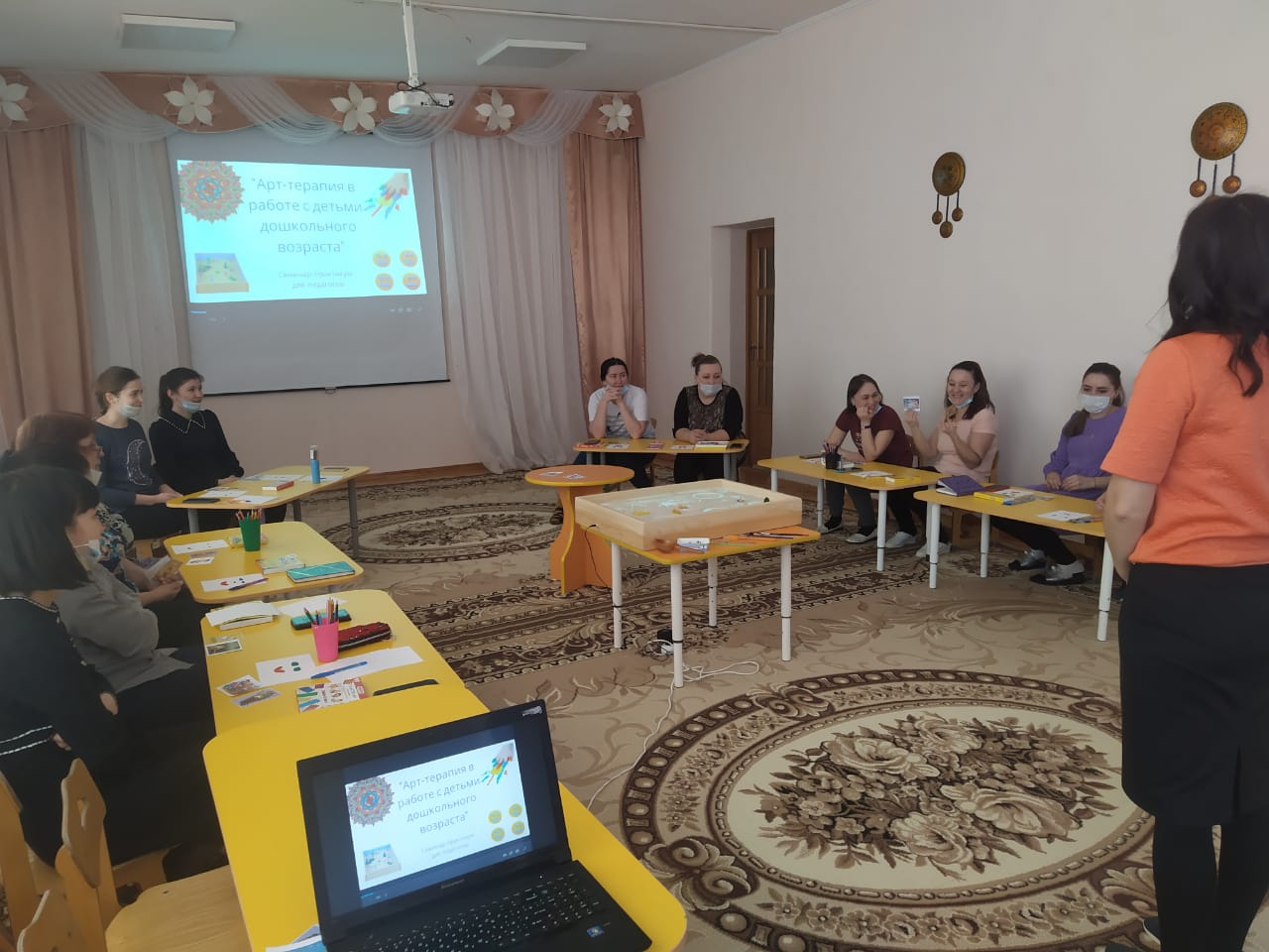 Педагог-психолог детского сада провела семинар-практикум для педагогов ДОУ на тему "Арт-терапия в работе с детьми". Она подробно рассказала какие виды арт-терапии педагоги могут использовать и применить в своей работе.